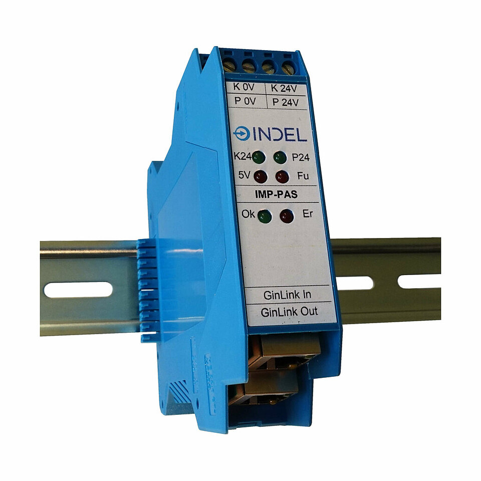 Der IMP-PAS ist ein GinLink nach IMP-Bus Koppler. Über den lokalen IMP-Bus können bis zu 16 IMP-Teilnehmer via GinLink angesprochen werden. Dank den zahlreich vorhandenen Modulen, wie beispielsweise I/O-, Zähler- und Spezial-Module kann das IMP-System ideal an die jeweilige Applikation angepasst und bei Bedarf durch zusätzliche Module erweitert werden. Die Spannungsversorgung für weitere Teilnehmer ist diesem Modul bereits integriert.