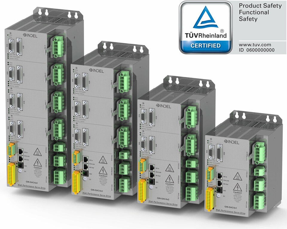Ab sofort ist die GIN-SAC4 Serie auch mit integrierter funktionaler Sicherheit STO, SS1, SS2, SOS und SLS verfügbar. Die neue GIN-SAC4 FS Serie wurde von TÜV Rheinland im Mai 2017 zertifiziert.
